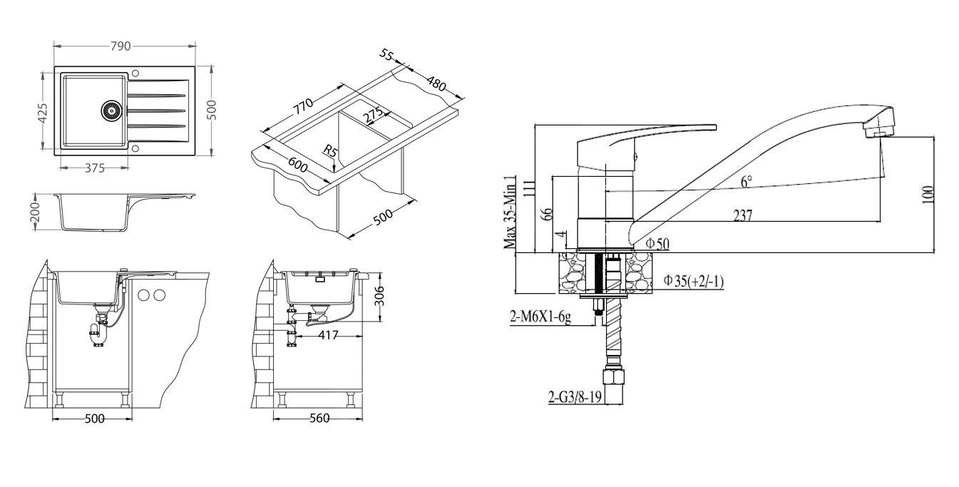 Set lavello Cadit 20 con controllo dello scarico e miscelatore Nina