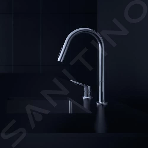 Miscelatore da cucina con doccetta estraibile, installazione a 2 fori