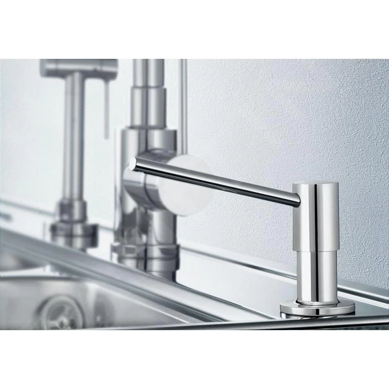 IL NOSTRO SUGGERIMENTO: potrete abbinare visivamente il dosatore del detersivo al rubinetto del lavandino e alla manopola di controllo dell’asta eccentrica. Questa variante del dispenser Blanco Torre é realizzata in un’elegante finitura cromata.