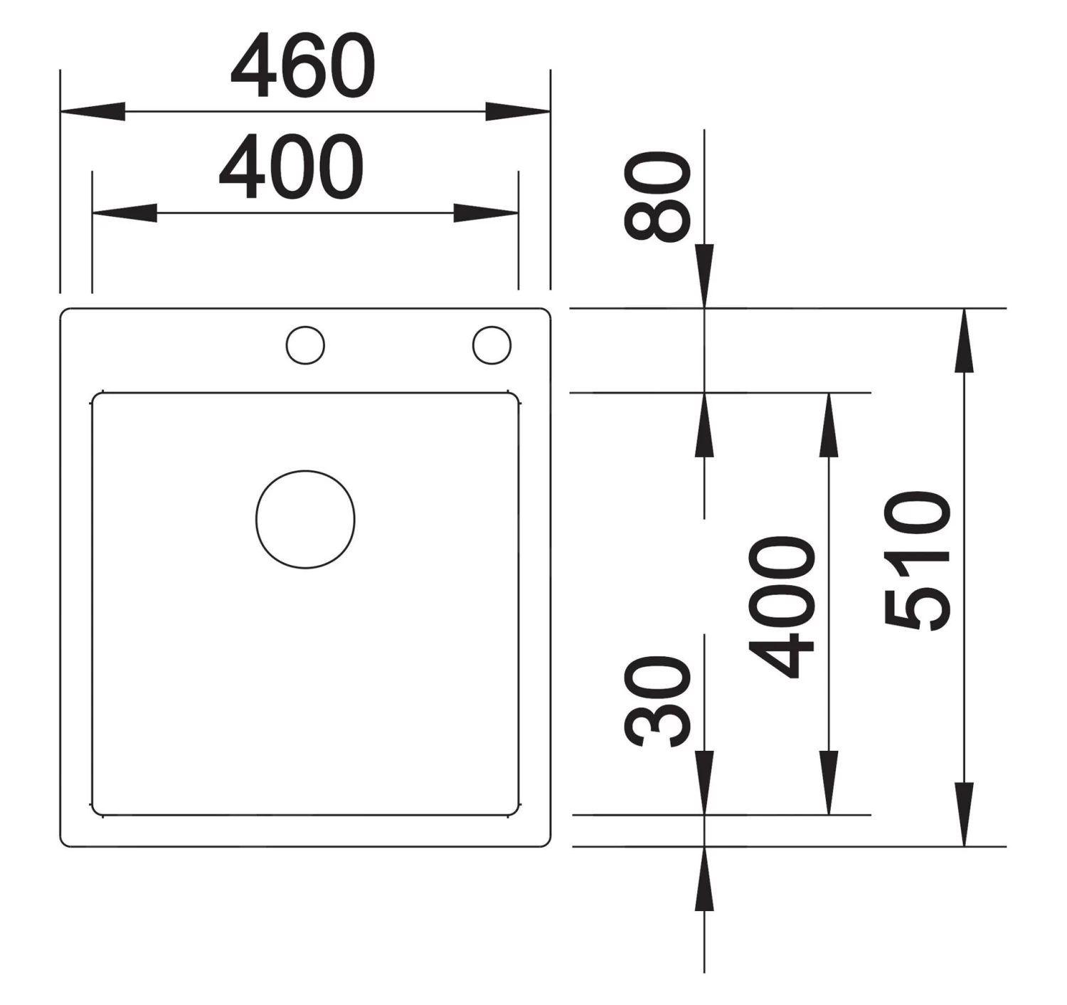 - 2 fori (uno per il miscelatore, uno per il comando dello scarico)