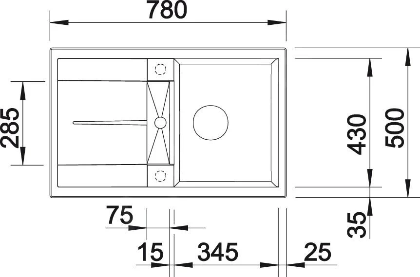 - dimensioni del lavello 345 x 430 mm