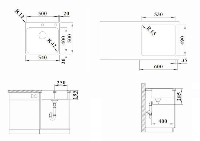 - dimensione totale: 540 x 500 x 185 mm (lunghezza x larghezza x profondità)