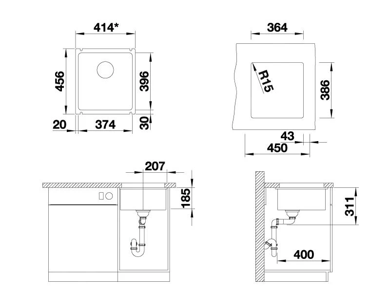 Lavello Subline 375 U, InFino®, senza gocciolatoio