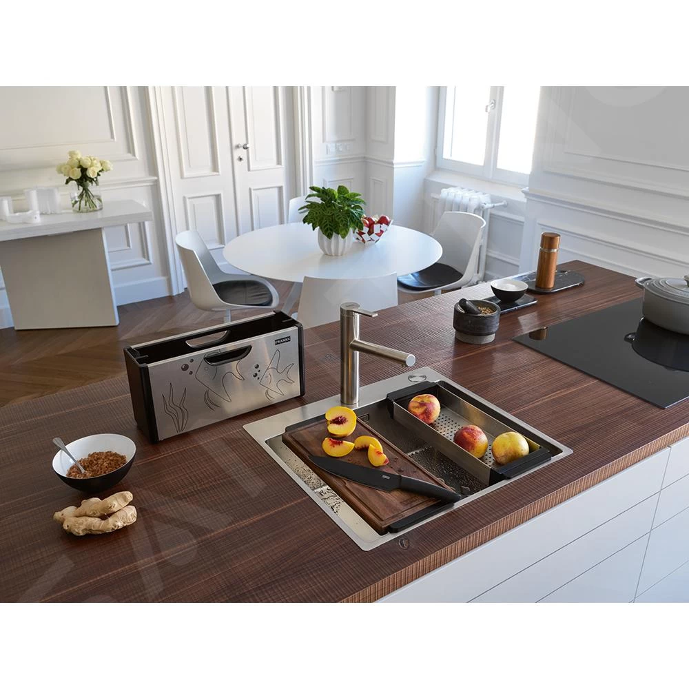 - la confezione contiene un tagliere, un coltello e una vaschetta per lavello