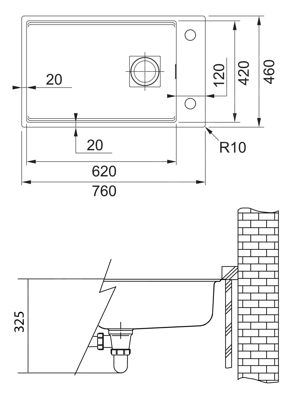 - lavello 620 × 420 × 200 mm