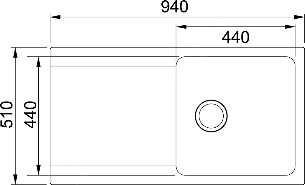 - lavello: 440 × 440 × 190 mm