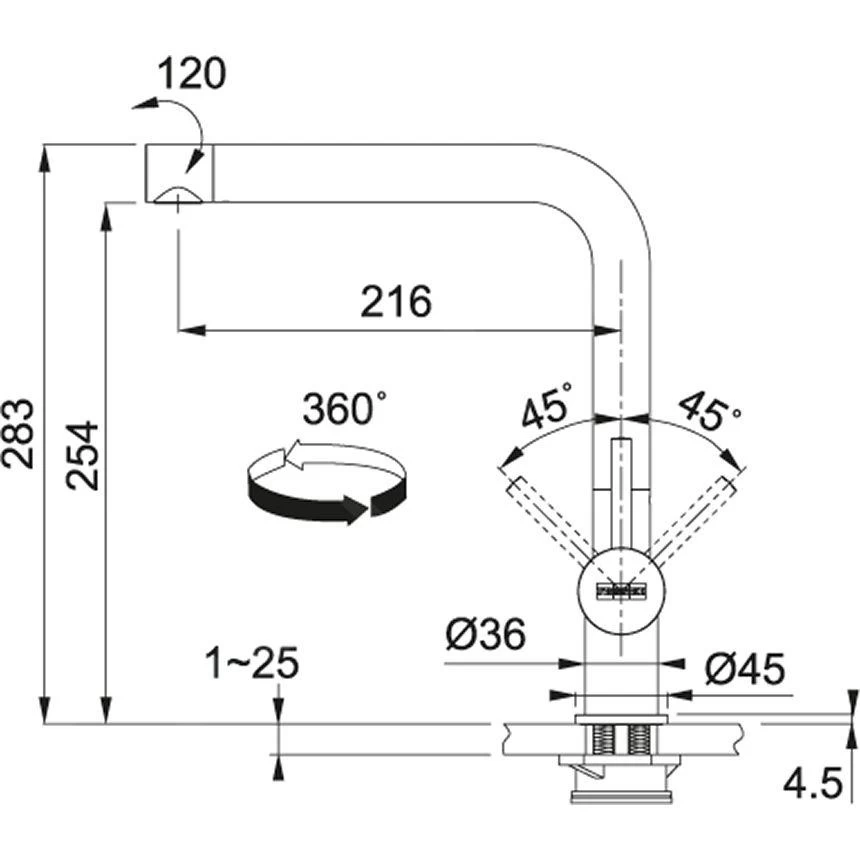 Il miscelatore è posizionato sul gocciolatoio con pendenza ed è leggermente inclinato.