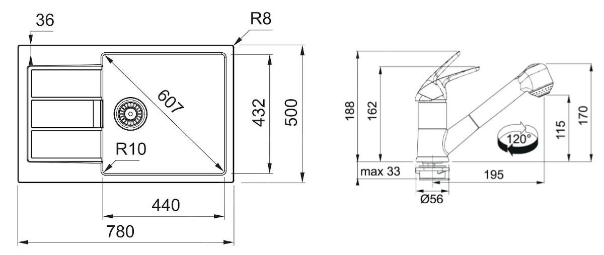 Lavello in tectonite Sirius 2.0 S2D 611-78 XL, per il montaggio sopra top