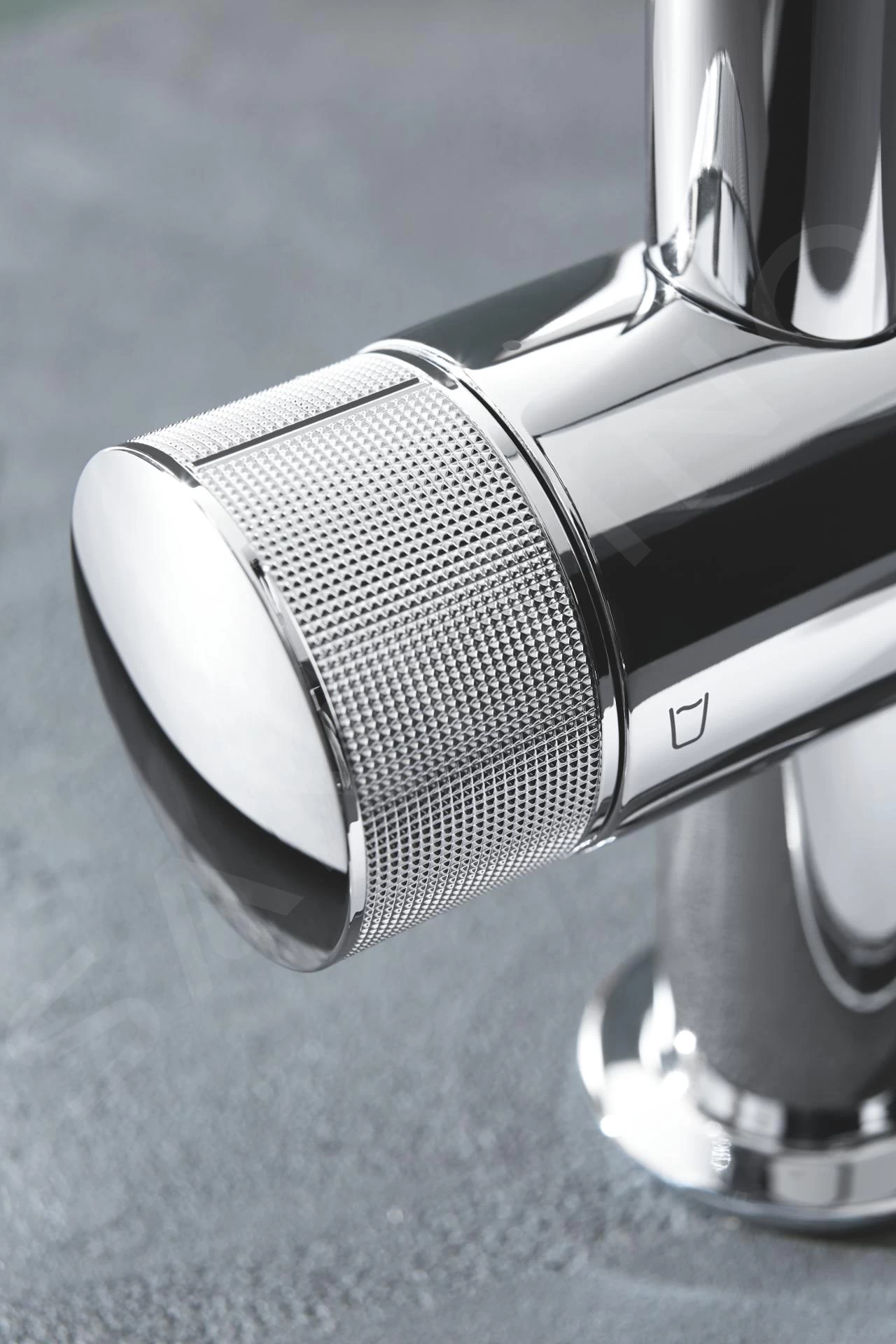 La forma del rubinetto é pratica a “L” e lo scarico alto consente un facile accesso allo spazio del lavello, ma anche la movimentazione o il riempimento di contenitori alti. La punta estraibile ti aiuterá a raggiungere anche gli angoli più complicati o a sciacquare perfettamente la frutta. Il rubinetto per cucina GROHE Minta é dotato di una leva tradizionale per l’acqua del rubinetto standard e di una maniglia zigrinata dove si ottiene l’acqua filtrata. Tutte le superfici sono protette dalla tecnologia GROHE StarLight contro i danni meccanici, mentre la cartuccia in ceramica con tecnologia GROHE SilkMove offre un controllo della leva facile e preciso. Apprezzerai sicuramente la possibilitá di ruotare lo scarico fino a 360 °. Il rubinetto lavabo con filtro prevede anche la possibilitá di conteggio regolabile e segnalazione acustica della necessitá di sostituire il filtro.