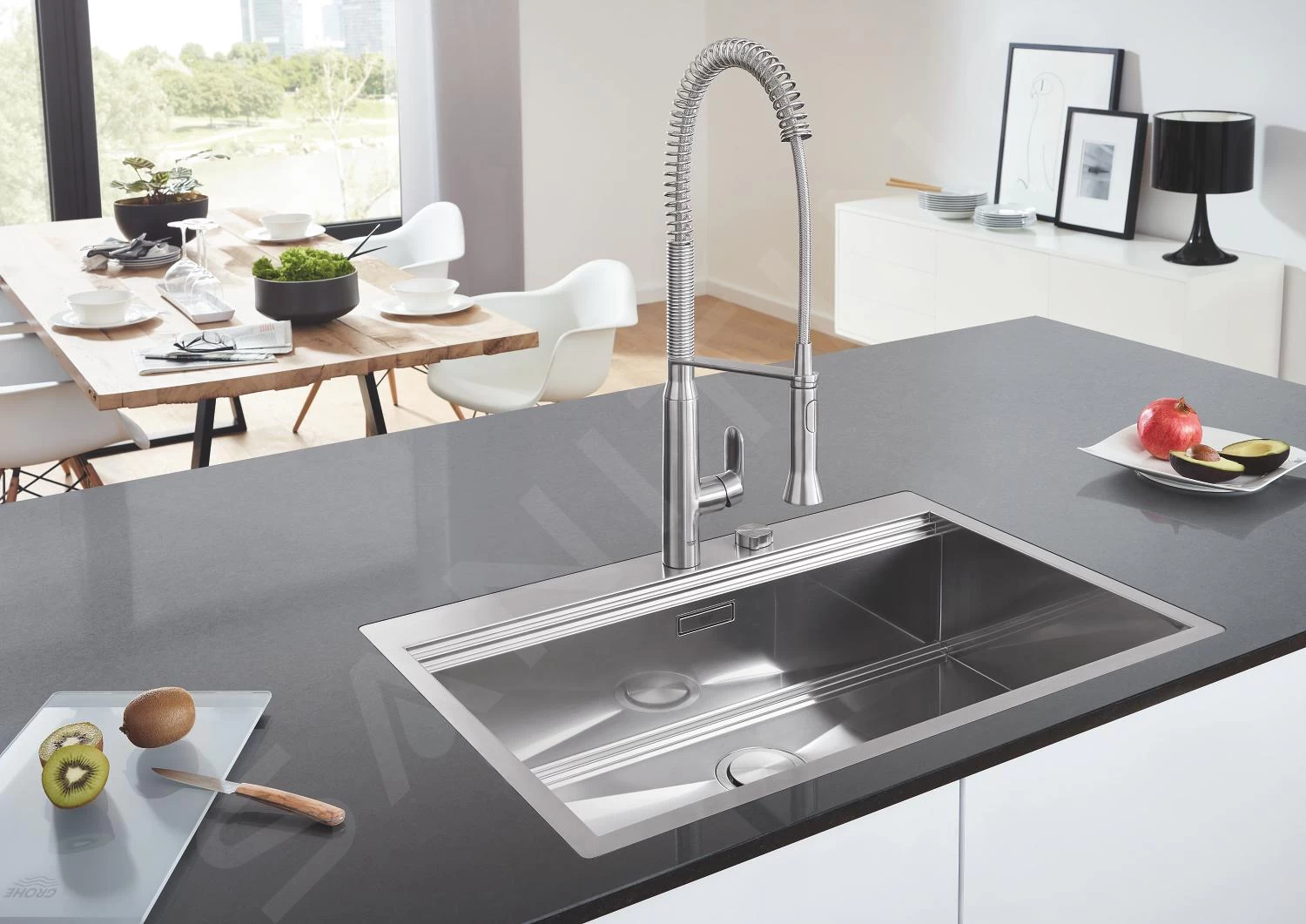 Il rubinetto da cucina GROHE K7 vi stupirá a prima vista. Il design fantasioso sosterrá perfettamente le cucine moderne e quelle classice. Inoltre, la finitura supersteel aggiungerá un tocco di originalitá e dará piú senso di sicurezza. La resistenza meccanica delle superfici é garantita dalla tecnologia GROHE StarLight, che allo stesso tempo rende difficile il deposito di calcare e sporco. Il rubinetto del lavabo manterrá a lungo il suo aspetto luminoso.