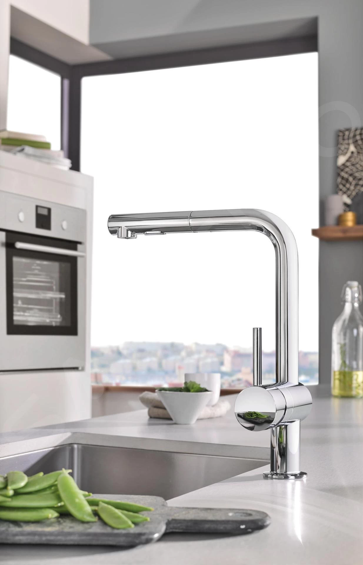 Il miscelatore per lavello a leva GROHE Minta colpisce per le sue linee morbide, le prestazioni impressionanti e una serie di funzioni pratiche. Le superfici cromate in combinazione con lo scarico a forma di “L” rendono questo rubinetto da cucina un pezzo senza tempo che arricchirá naturalmente le cucine moderne e classiche. Apprezzerete sicuramente non solo l’altezza sufficiente dello scarico e la possibilitá della sua rotazione di 360 °, ma anche il pratico doccetta estraibile, che semplificherá notevolmente la gestione dell’acqua. É possibile utilizzare due modalitá correnti. Dopo aver utilizzato lo spray, lo spray viene comodamente aspirato e ripulito nello scarico utilizzando la tecnologia EasyDock. La cartuccia in ceramica con tecnologia GROHE SilkMove garantisce un controllo preciso della leva e un controllo della temperatura e del flusso dell’acqua senza problemi.