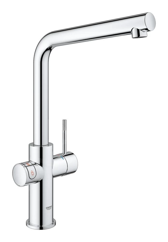 Miscelatore da cucina GROHE RED Duo (braccio di erogazione a forma di L) con set di filtraggio e caldaia di dimensione M per avere immediatamente l’acqua bollente. Finitura cromata.