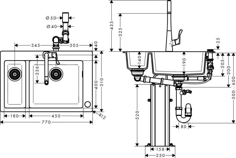 - consente una facile posa del tubo flessibile nel mobile del lavello