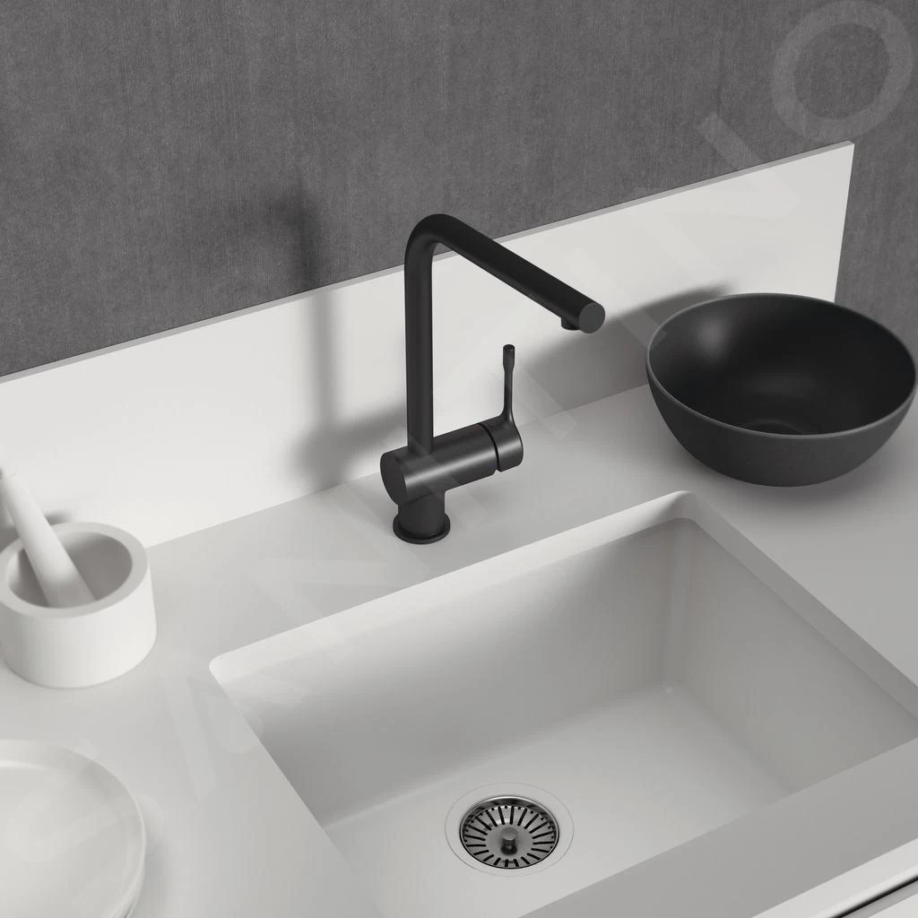 Miscelatore per lavello con braccio di erogazione girevole alto