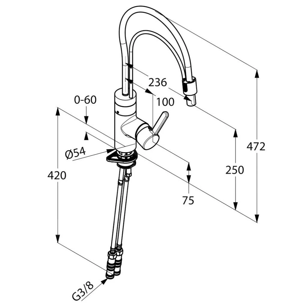 - braccio di erogazione flessibile, può essere rimosso dal supporto ed esteso