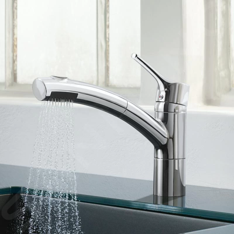 - braccio di erogazione girevole di 110°, doccetta estraibile per i piatti