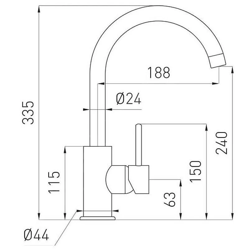 - altezza del miscelatore 335 mm