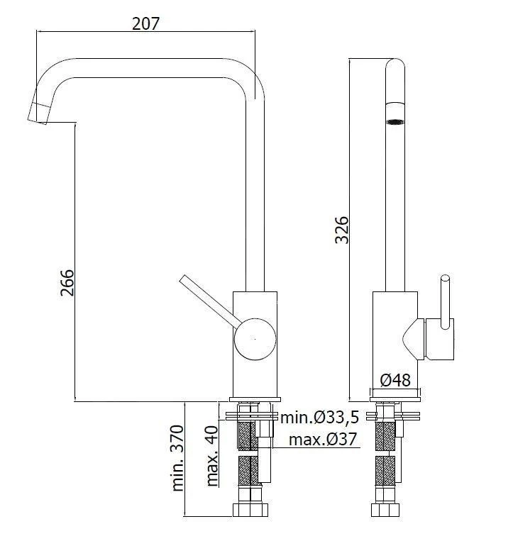 - altezza del miscelatore 326 mm