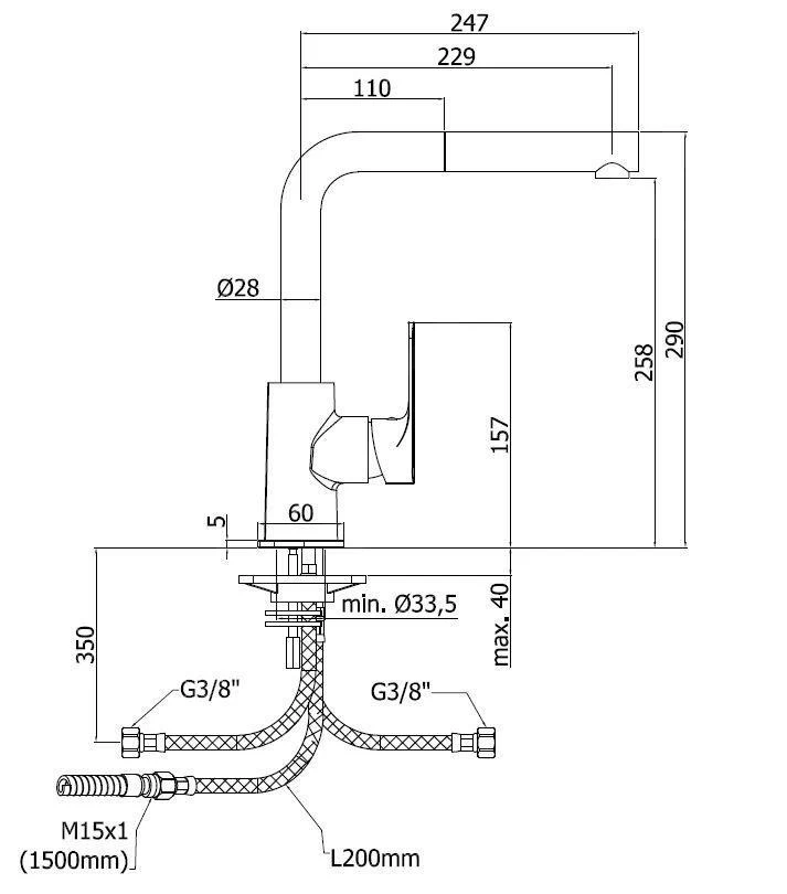Miscelatore verticale monocomando per lavello con doccetta estraibile