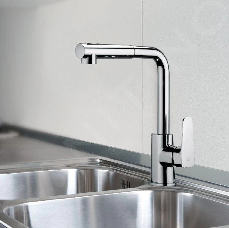 Miscelatore verticale monocomando per lavello con doccetta estraibile e due getti