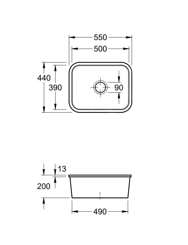 - dimensioni di ingombro del lavello: 550 x 440 mm