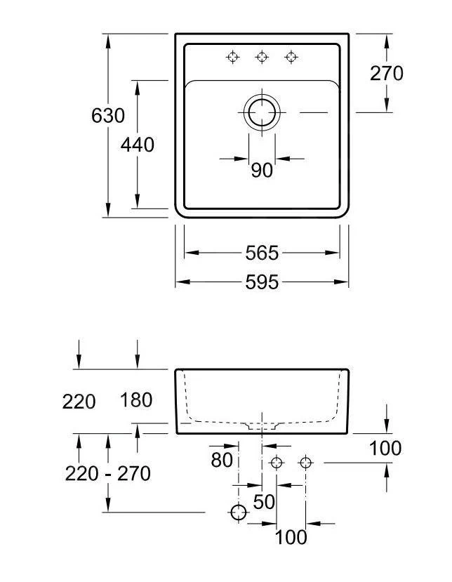 - dimensioni di ingombro del lavello: 630 x 595 mm