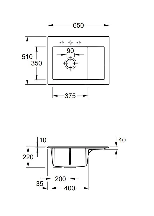 - dimensioni di ingombro del lavello: 650 × 510 mm