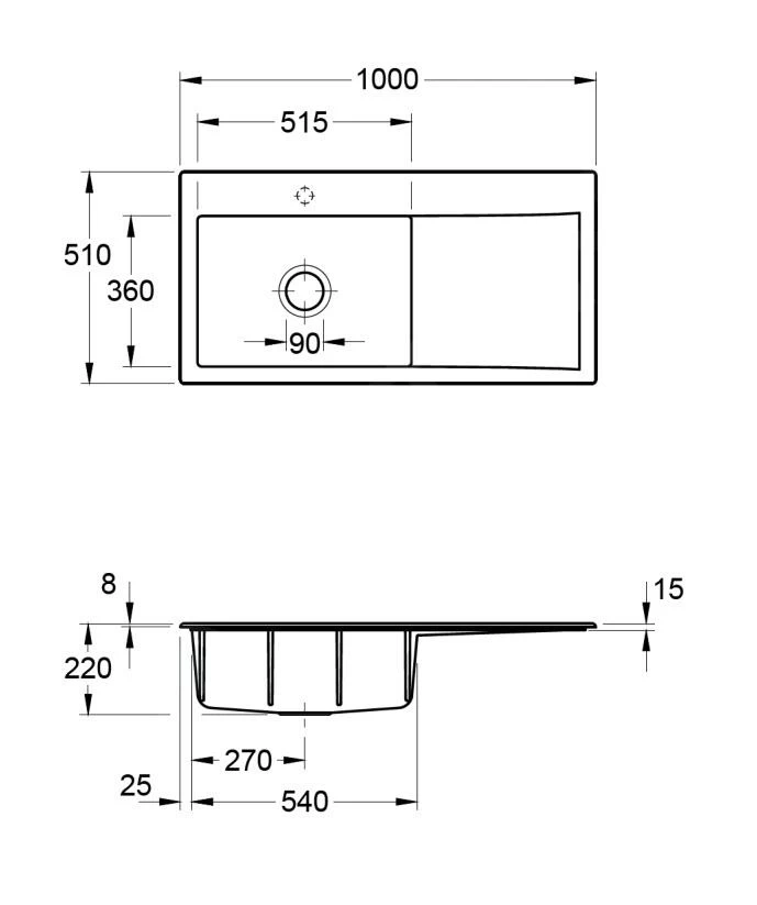 - dimensioni di ingombro del lavello: 1000 x 510 mm